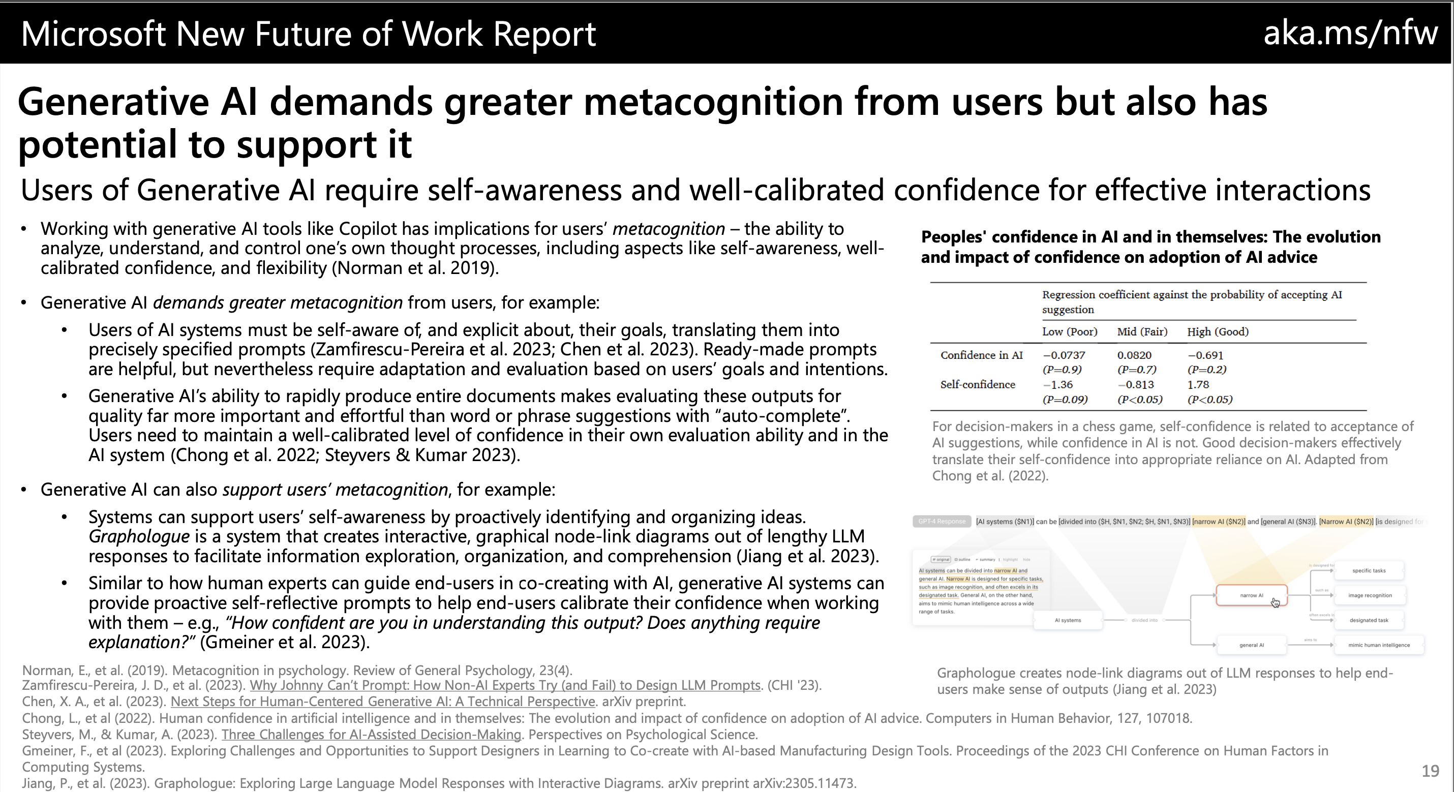 - A detailed analysis of what metacognition looks like at the workplace is available in the paper “Viktor Kewenig and Lev Tankelevitch. 2023. Think, evaluate, adapt: The metacognitive demands of generative AI.” (Link)
