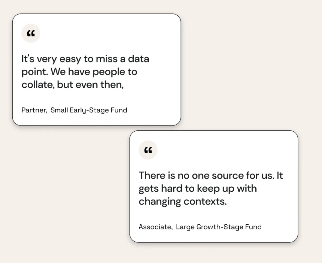 As I spoke with more users about their venture research process, I realized that there was something common across doing “research” to create thesis documents, company notes, prepare for a founder call, or post on social media.