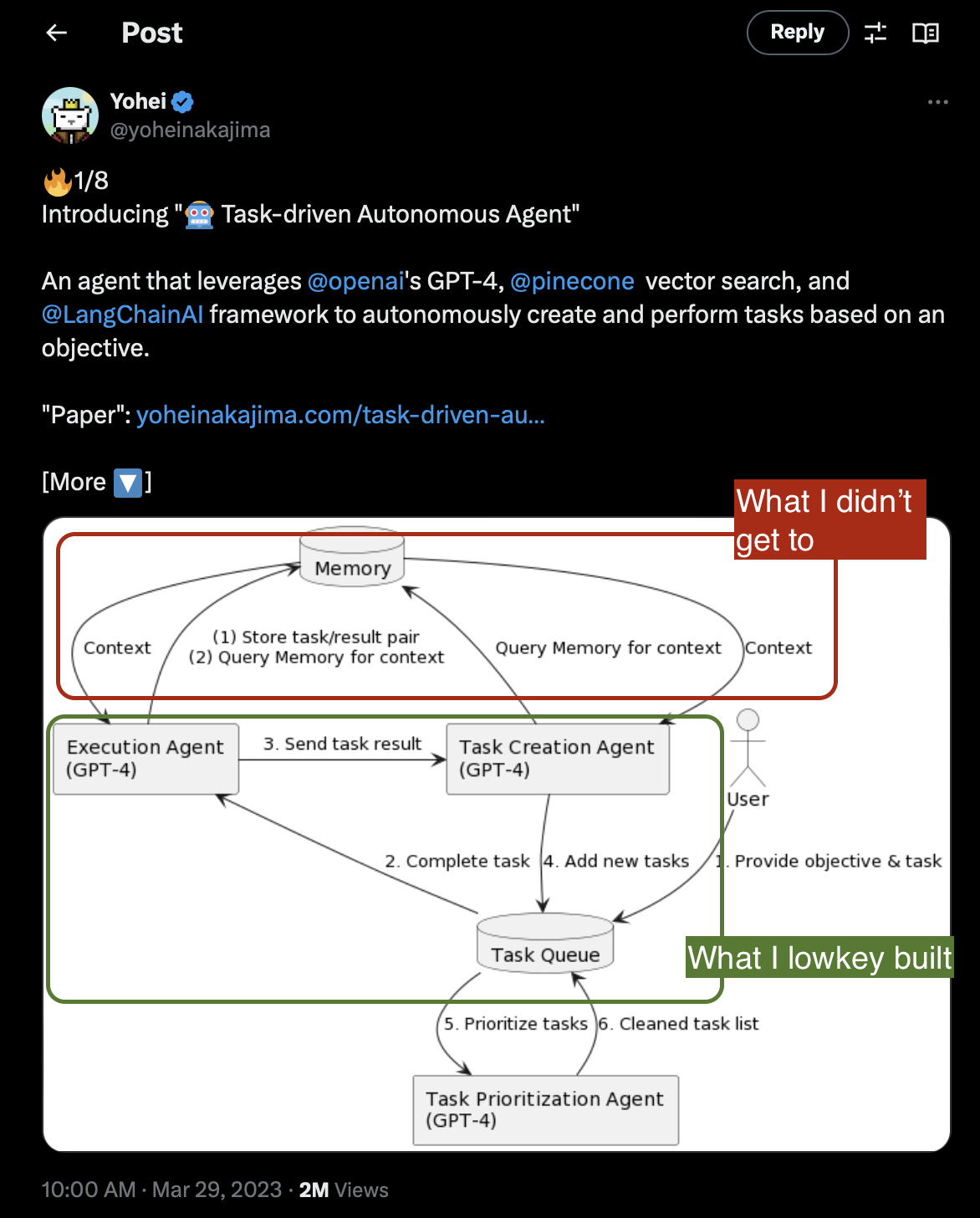Hey, the good thing is that while I didn’t get to building the “autonomous” prioritizing, memory-having, reflective agents that I set out to – I did say touch along the same lines as LlamaReport.