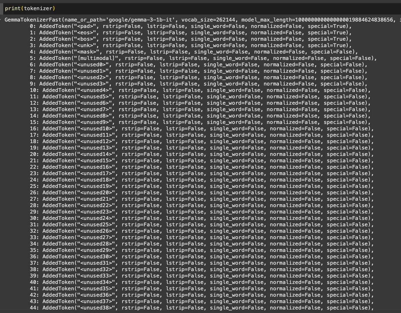 Unlike interacting with tools like ChatGPT, where tokenization remains hidden, here I got to see firsthand how words translate into tokens. Loading a model-specific tokenizer and exploring its special tokens was insightful. Additionally, printing the model specifications and reviewing its attention modules was like peeping into the biology of the model.