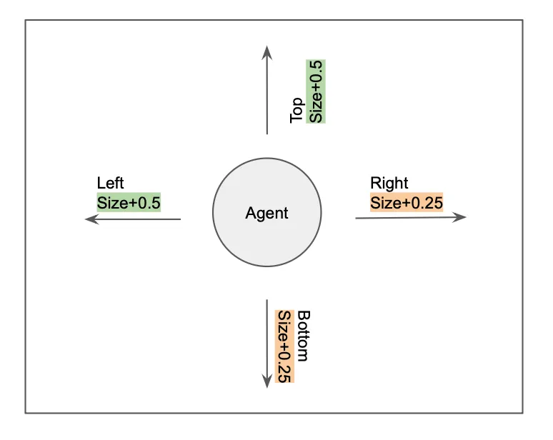 - Based on move direction, the size of the agent would increase by a pre-determined constant.