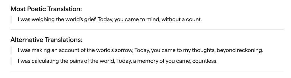 I am grateful that I get the chance to start my Sundays with the free time and leisure to attempt translating poetry.